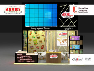 Ahmed Foods Gulfood 2025 Al-Ahmed Foods Gulfood 2025 19th-23rd Feb 2025 Dubai World Trade Centre 6m x 6m (36 sqm)A vibrant booth for Ahmed Foods, showcasing their rich flavors