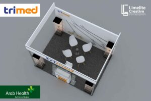 Trimed Arab Health 2024 Trimed Arab Health 2024 29 Jan – 1 Feb 2024 Dubai World Trade Centre 4m x 3m (12 sqm)A clean and well-lit booth for Trimed,