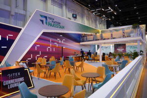 Connexion Lounge Gitex Global 2024 14th-18th Oct 2024 Dubai Connexion Lounge stall size was 8mX3m having total area of 24 squares meter. The design looked