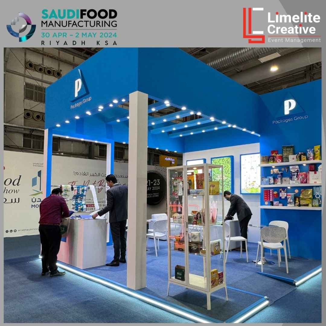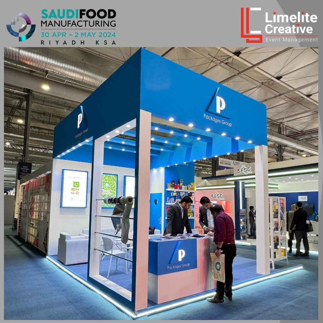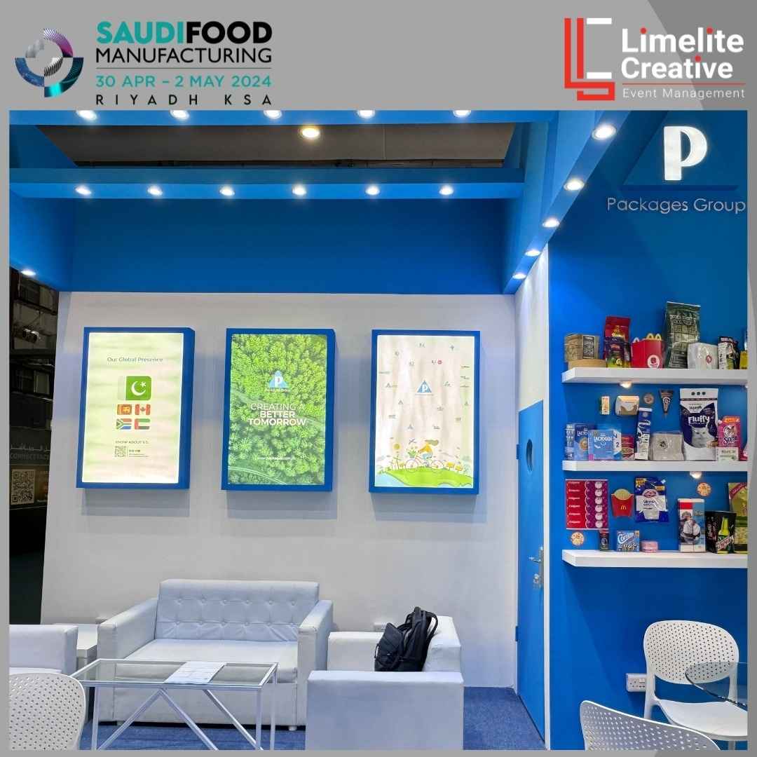 5m x 5m (25 sqm)A modern and well-branded booth for Packages Group, designed to highlight advanced packaging solutions. The clean layout and product displays attracted key players from the food manufacturing industry.
