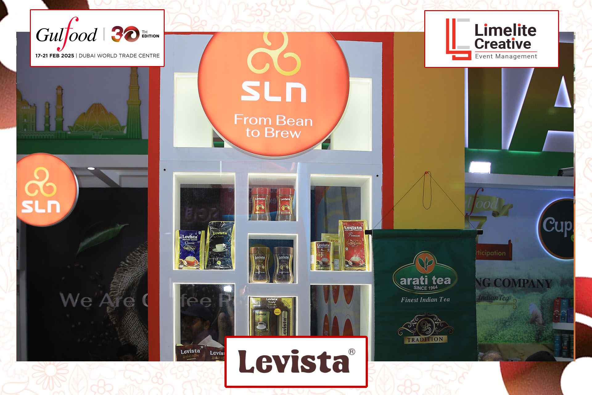 A neat and inviting booth for SLN, designed to highlight quality offerings with organized displays and clear branding. The space attracted interest from buyers and food industry professionals.