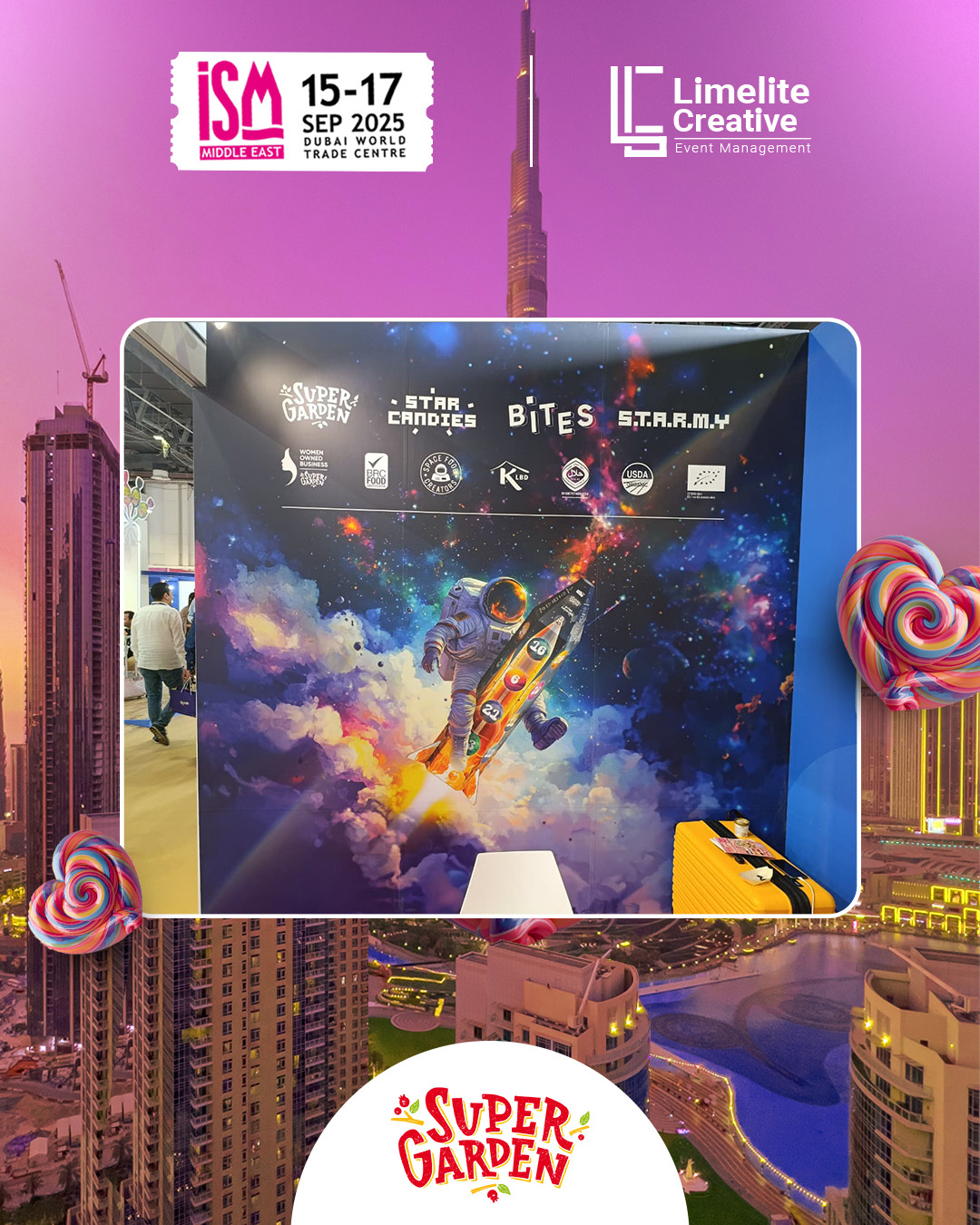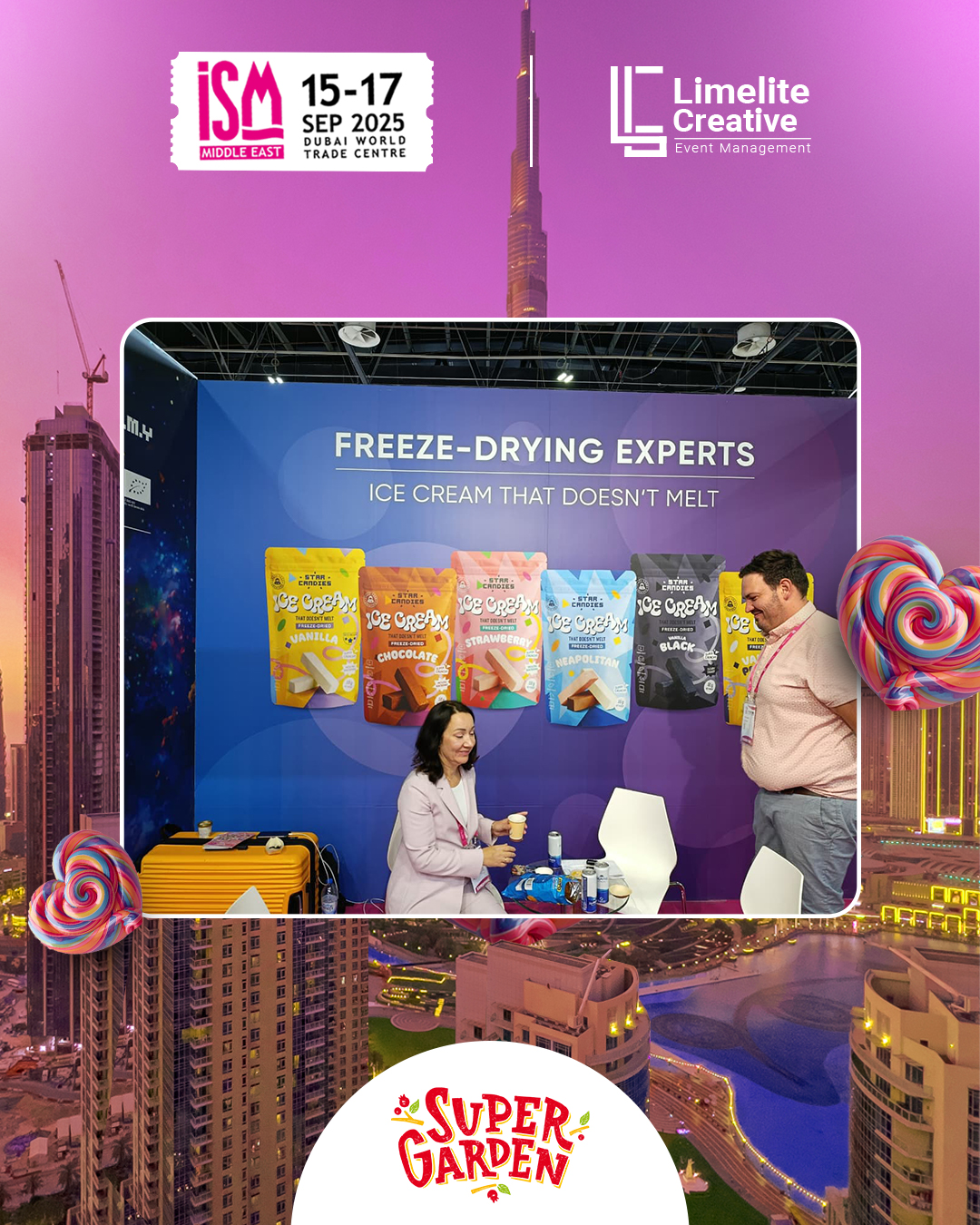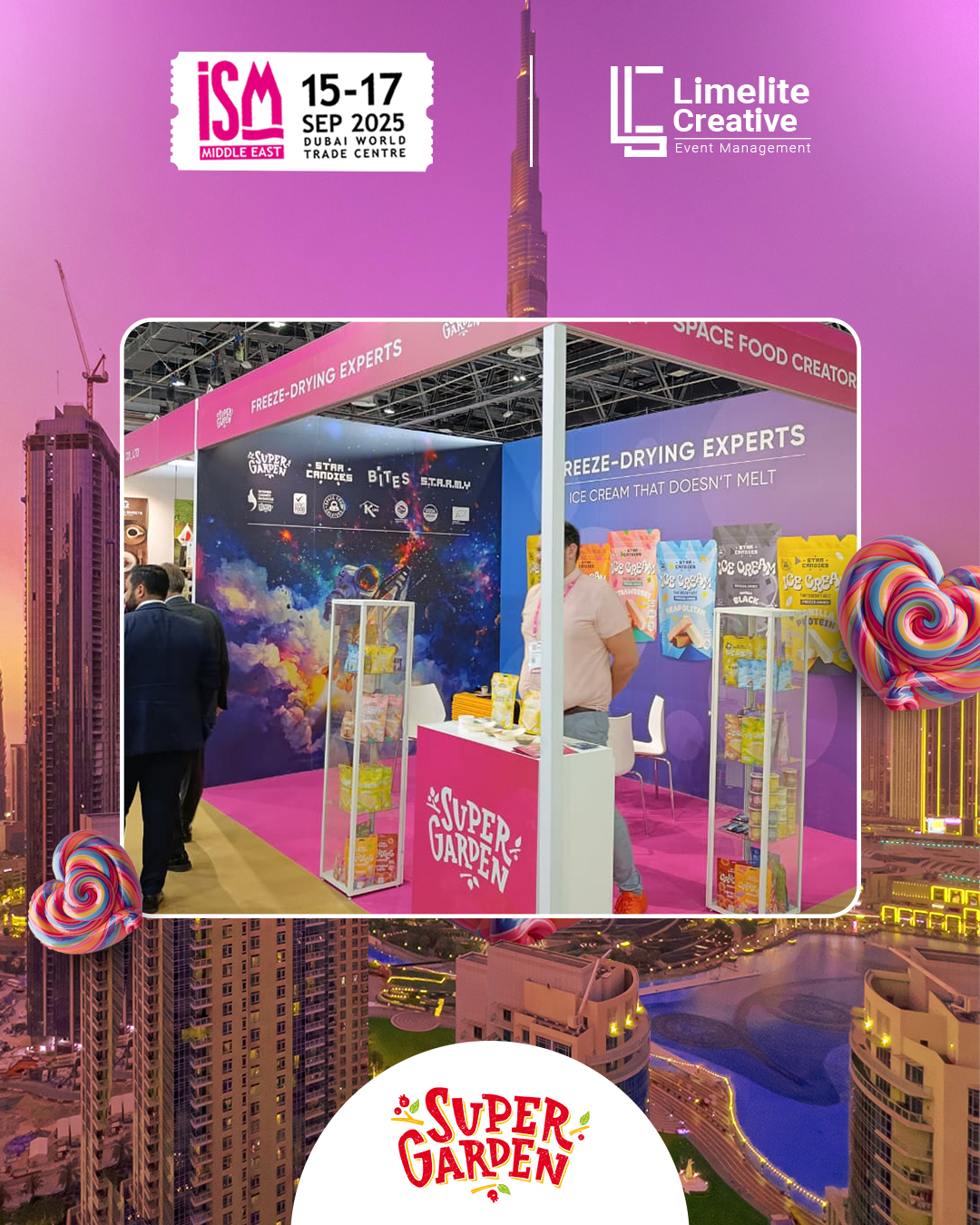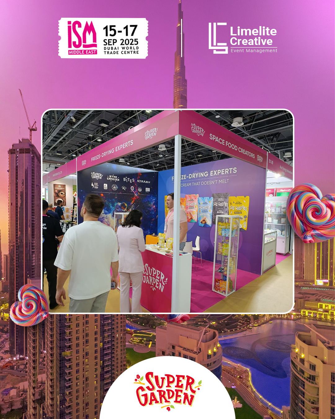 A clean and nature-inspired booth created for Super Garden at ISM 2025, blending modern design with organic elements to reflect the brand’s focus on natural goodness and innovation. The space featured earthy tones, subtle greenery, and interactive product displays, offering visitors an immersive experience that highlighted Super Garden’s commitment to healthy, freeze-dried perfection.