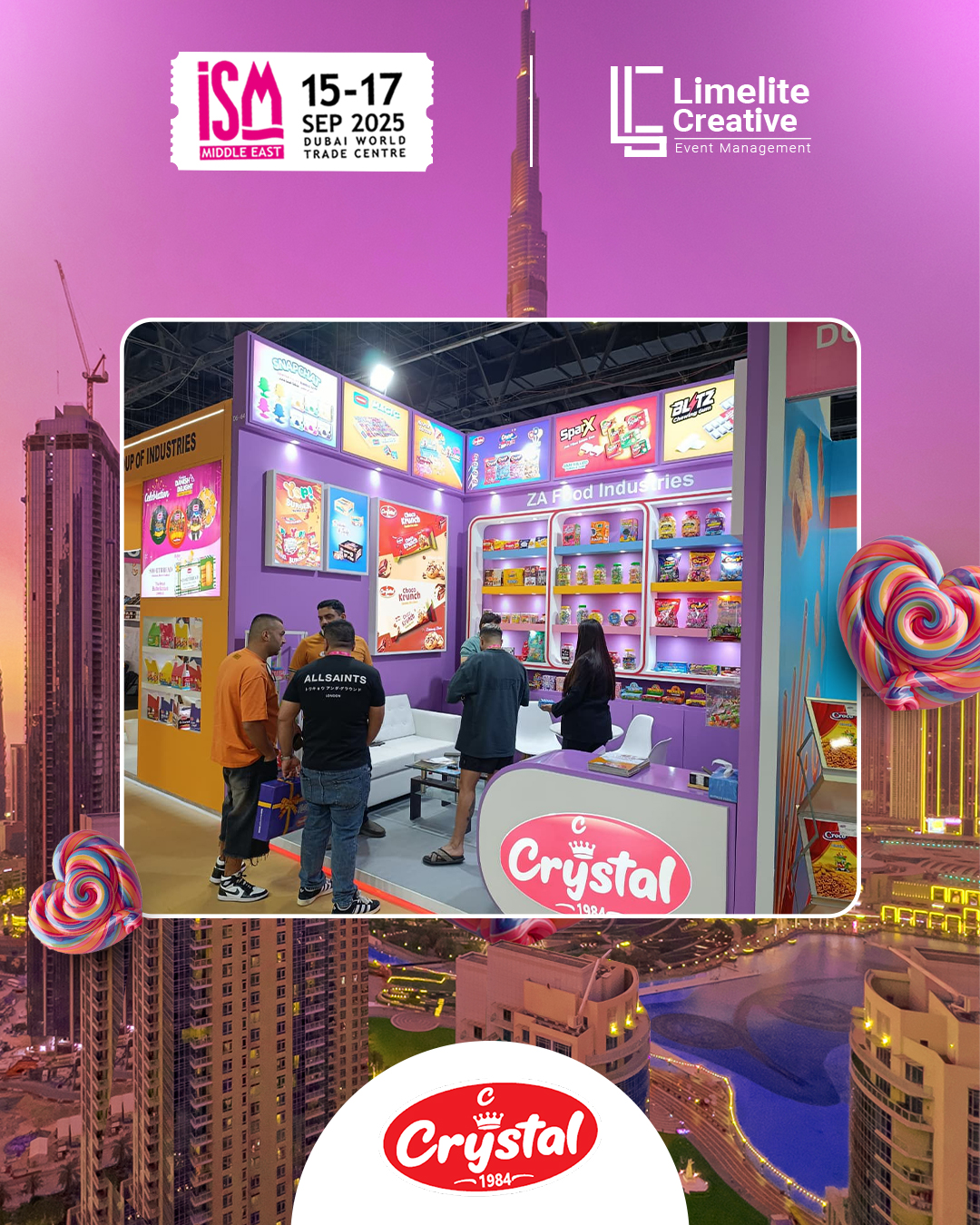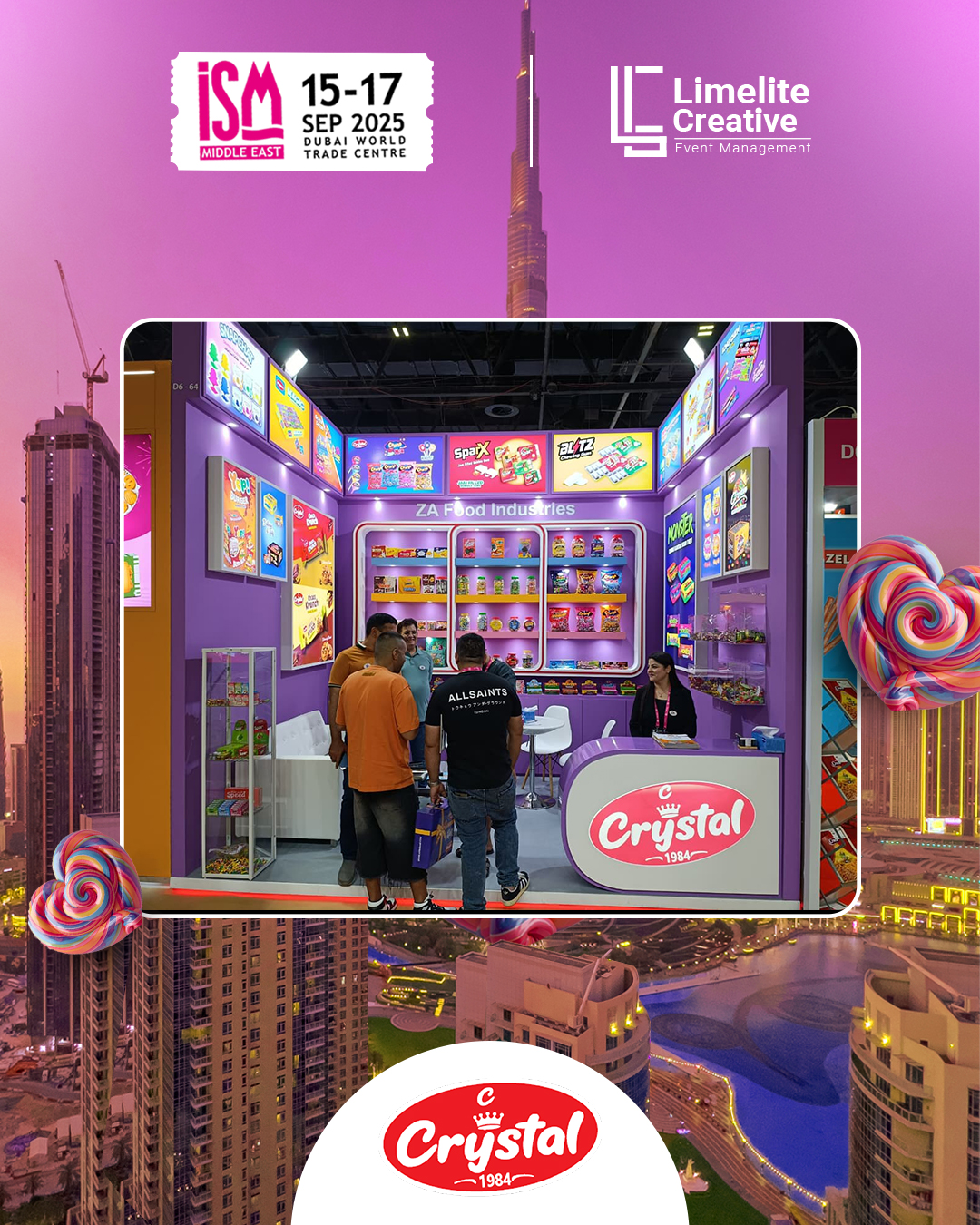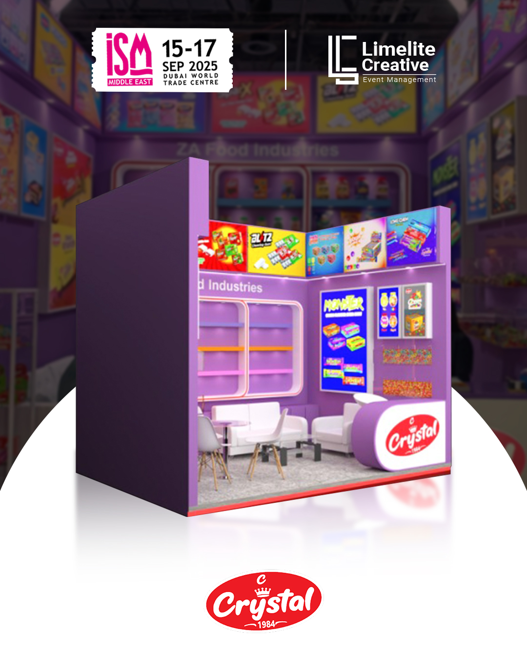A clean and contemporary booth designed for ZA Food at ISM 2025, combining minimalist aesthetics with vibrant brand storytelling. The space featured modern materials, accent lighting, and interactive display zones that highlighted ZA Food’s commitment to quality, flavor innovation, and a fresh approach to global snacking trends.